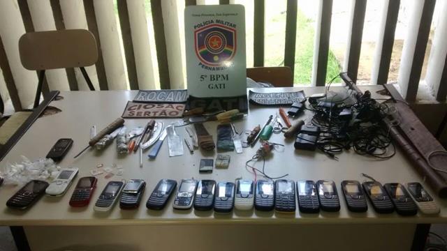 Na manhã desta quinta-feira (12), equipes do 5º BPM e da Ciosac, juntamente com agentes penitenciários da Secretaria Estadual de Ressocialização (Seres), encontraram com os detentos 20 celulares, oito chips – além de facas de fabricação artesanal (conhecidas por ‘chunchus’) e mais 20 papelotes de cocaína.